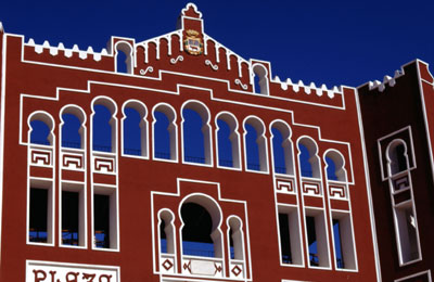 La Plaza de Toros, edificada sobre un antiguo convento franciscano, que fue inaugurada en 1.880 y se le añadió, con la remodelación de 1926, una fachada neomudejar