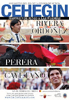 Según Abril, “esto confirma la celebración de la corrida de toros del próximo martes, Día de la Comunidad Autónoma, por parte de la empresa Circuitos Taurinos SL, en la que pisarán el albero ceheginero los espadas Francisco Rivera, Miguel Ángel Perera y Cayetano Rivera”. Ésta dará comienzo a las 7 de la tarde. Entradas anticipadas a la venta en Cafetería Bar Borneo.