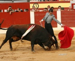 estuvo muy valiente, firme y decidido, su 1º no le dio opciones.A las dificultades del encierro de Miura ha habido que añadir el molesto viento durante esta primera de Feria, la terna tan solo pudo conseguir ovaciones, reaparecía Padilla, tras su reciente cogida en Ales (Francia), que pudo cortar una oreja que perdió con la espada. JUAN BAUTISTA, lidió el mejor toro de la tarde que salió en último lugar, pero la faena no llegó a los tendidos y tampoco acertó con la espada.