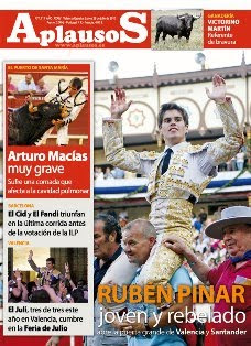 El semanario también se hace eco de otroos nombres propios de la semana, como Rubén Pinar, quien ha cosechado reiterados éxitos en Valencia y Santander consiguiendo abandonar en volandas ambos cosos; y El Juli, gran triunfador de la Feria de Julio de la capital levantina. Junto a ellos, una triste noticia: la fuerte cornada sufrida por el mexicano Arturo Macías en El Puerto de Santa María. De todo ello se hace eco esta semana la revista Aplausos, que además ofrece información de todo lo acontecido en otras plazas como las de Mont de Marsan, Villarrubia de los Ojos, Roquetas de Mar, Collado Villalba, Vitoria, Madrid o Barcelona, de donde mañana se sabrá si ha sido el del domingo el último festejo que se celebra en la Monumental tras la votación en el Parlament sobre el futuro de los toros en la comunidad catalana.