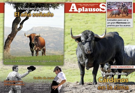 El número 2.055 de APLAUSOS ya se encuentra en los quioscos. El ejemplar trae consigo el III Extra de Ganaderías que protagonizan en portada las ganaderías de Núñez del Cuvillo y Daniel Ruiz. En páginas interiores, el ganadero Álvaro Cuvillo analiza lo que ha dado de sí la temporada para la divisa gaditana: “Lo importante es que hemos recobrado el estilo de la ganadería, que para nosotros era prioritario, y ha habido tardes exitosas. En ese sentido la temporada ha sido espectacular”. Y añade: “El propio toreo es el mejor medidor de bravura. Nosotros soñamos con ese toro que cuando lo sometes embiste más y mejor. Ese es el más cercano al paradigma de toro bravo”.