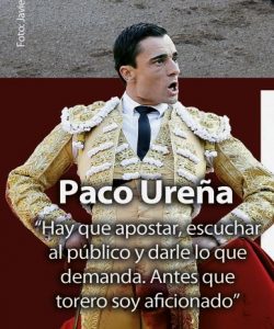PACO UREÑA: “Pureza es no mentirte a ti mismo, no mentir al público y, por supuesto, no mentir al toro. Ser sincero con el animal y con quien va a verte es lo más importante”. El diestro murciano, entre otras muchas reflexiones, afirma: “Los tiempos de soledad no sólo no los olvido, sino que me los recuerdo cada día. No tenía ni un clavo al que agarrarme y pensé en quitarme, sí”.