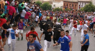 Un encierro que ha resultado peligroso al separarse la manada y quedar un novillo rezagado desde las Cuatro Esquinas, donde un resbalón le ha hecho separar distancias con sus hermanos. La embestida de los novillos, que han ido haciendo derrotes a uno y otro lado, también ha puesto a prueba a los numerosos corredores que hoy se han concentrado en el quinto encierro de Calasparra que se ha prolongado durante tres minutos y veinticuatro segundos, de cohete a cohete. Al ser sábado, el quinto encierro de Calasparra ha registrado una afluencia masiva de público.