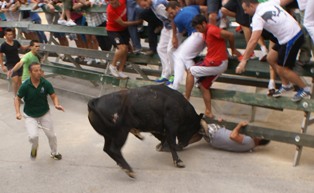 Leve cogida en la suelta de vaquillas.La suelta de vaquillas enla Plazade Toros posterior al encierro ha registrado un herido leve al que una de las vaquillas propinaba un pinchazo. El joven ha sido atendido en la propia plaza sin mayores consecuencias.