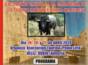 La PEÑA TAURINA de FILIBERTO va a realizar el próximo día 20 de Abril un viaje a la ganadería de Daniel Ruíz, con tentadero a cargo del propio torero de Calasparra FILIBERTO.