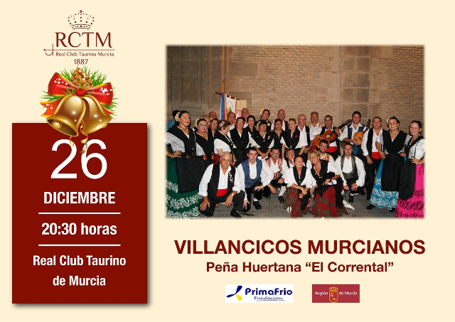 El Real Club Taurino de Murcia tiene el gusto de invitarles a nuestro último Martes Taurinos de 2023, con la actuación de la Peña Huertana El Corrental interpretando Villancicos murcianos.