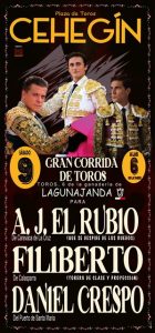 Sin saber si habrá tradicional público «corte de coleta», nunca acaban de cortarse el añadío los toreros, será en la corrida tradicional de las Fiestas Patronales de Cehegín, en honor de la Patrona la Virgen de las Maravillas, el sábado 9 de septiembre, a las seis de la tarde. Así, en tarde de incierta asistencia de público, el policia&torero Antonio José «El Rubio», el calasparreño Filiberto y el torero del Puerto de Santa María, Daniel Crespo harán el paseíllo con las ilusiones de agradar y triunfar, como es habitual. Los toros serán de la ganadería de Lagunajanda.
