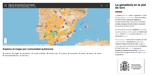 Han sido meses de trabajo con el objetivo de dar visibilidad a la gran importancia económica y social que tiene la cría y selección del toro bravo en nuestro país, que se traduce en cifras como las 989 ganaderías que hemos localizado en el mapa, distribuidas en 13 comunidades autónomas, con un 27 por ciento de ellas situadas en Andalucía y Castilla y León. El mapa interactivo ofrece datos de las diferentes ganaderías que permiten conocerlas más a fondo, además de ofrecer una idea muy completa de su valor ecológico.