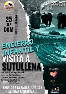 LORCA (Murcia). Sabado, 17/septm./2022. -Prensa-C.T.L.- La jornada comenzará con visitas guiadas por grupos a la plaza de toros de Sutullena para que quienes así lo deseen puedan conocer el avance de las obras de remodelación que en ellas se están llevando a cabo, con la colaboración de la empresa adjudicataria, la UTE Cydemir-Patrimonio Inteligente y del Ayuntamiento de Lorca. Será en horario de 10 a 12 horas.