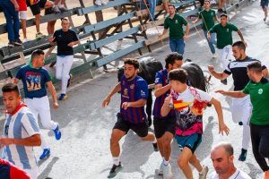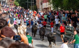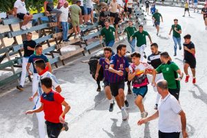 CALASPARRA. Lunes, 08 de septiembre de 2025 – NdP – Como cada mañana, cuando la torre del reloj de Calasparra marca con su sonido las diez de la mañana, Eulalio García prende el cohete que da inicio al encierro. En este 8 de septiembre, día de la Virgen de la Esperanza, el encierro estuvo marcado desde el inicio por dos de los novillos que quedaban rezagados en corrales. Eso obligó a los corraleros a soltar a los bueyes “escoba” para reconducir la manada hasta la plaza.
