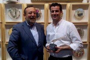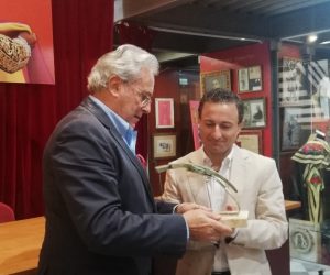 Al final del acto, Rafaelillo recibe, de manos del presidente del Real Club Taurino de Murcia, Alfonso Avilés, el premio a la Mejor Estocada de la Feria de Murcia 2018.