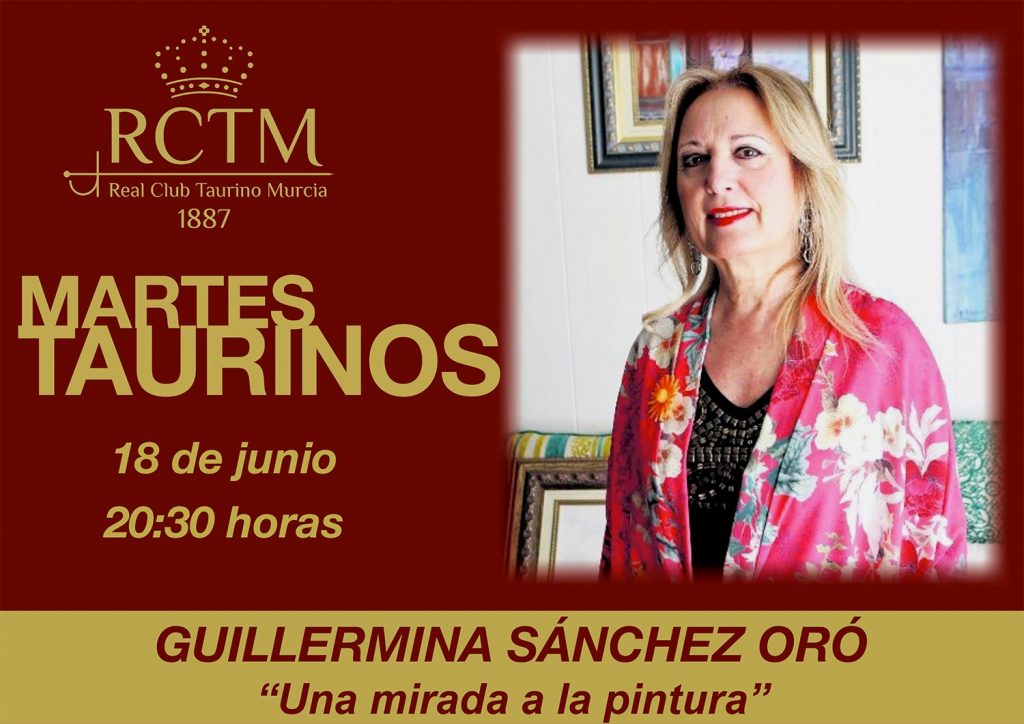 MURCIA. Miercoles, 19 de junio de 2019. -Prensa-RCTM- La pintora Guillermina Sánchez Oró fue la protagonista del Martes Taurino celebrado en la noche del martes 18 de junio en los salones del decano de los clubes taurinos. La murciana estuvo acompañada por Juan Vicente Rubio, catedrático de Historia, y por Francisco Vera, presidente del Foro Taurino y Cultural de Cartagena, con quien compartió una interesante tertulia en la que se abordó la pintura taurina como disciplina que entraña una gran dificultad por su necesidad imperiosa de expresar un momento efímero, y desde la concepción que los distintos autores hacen de ella; como plasmación de lo que ocurre en el ruedo o como vía para expresar otros conceptos. Los ponentes estuvieron presentados por el gestor cultural, Victorio Melgarejo.