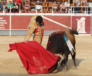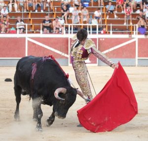 Rafaelillo apostó fuerte en el arranque de la tarde yéndose a portagayola, recetando varios faroles de rodillas y toreando bien a la verónica al toro que abrió plaza. También inicio de rodillas la faena de muleta que fue un toma y daca con un toro que soltaba la cara y que no resultaba fácil. Fue a más en acoplamiento y reposo en una labor entregada y muy por encima de su enemigo. Pinchó tres veces antes de dejar una estocada. Ovación.
