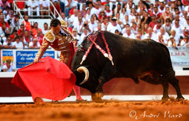 DAX (Francia). Domingo, 13/agosto/2023. Cuarta de la feria. Publicado en www.MUNDOTORO.com. Foto: ANDRÉ VIARD. La ganadería de Pedraza de Yeltes lidió cuatro toros importantes: tres de triunfos frustrados por el mal uso de los aceros durante la primera parte de la corrida en la que Rafaelillo, Javier Cortes e Isaac Fonseca estuvieron a su altura trastos en manos; y otro para cerrar el festejo, al que picaron más de la cuenta y volvió a los corrales después de sonar los tres avisos. Hubo varios tercios de varas importantes donde se lucieron los jinetes y los caballos de la cuadra Bonijol.