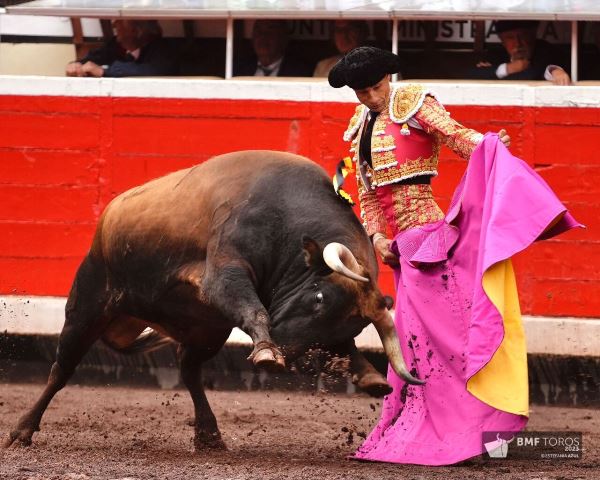 SAN SEBASTIÁN (Guipúzcoa). Domingo, 13/agosto/2023. Publicado en www.MUNDOTORO.com – Foto: BMF TOROS2023/ESTEFANIA AZUL. Inauguración de la feria de la Semana Grande. Dos orejas para la verdad de Ureña y un rácano premio para una importante tarde de Valadez en San Sebastián. Abrió la Semana Grande de Illumbe una corrida de Fuente Ymbro, que resultó interesante por su exigencia, frente a la que Paco Ureña se jugó el tipo en una entregada tarde. Importante también fue la actuación de Leo Valadez, que debió de verse reflejada en una merecida Puerta Grande si no fuera porque el presidente se quiso colgar la medalla de protagonista. Antes, el mexicano ya había dejado otro trasteo de impronta, pero sin la rúbrica de la espada. Cotiza al alza el mexicano, cada vez más redondo en todos los tercios. Ginés Marín dejó su impronta y la clarividencia del momento que atraviesa, imponiéndose a su lote con un gran toreo al natural.