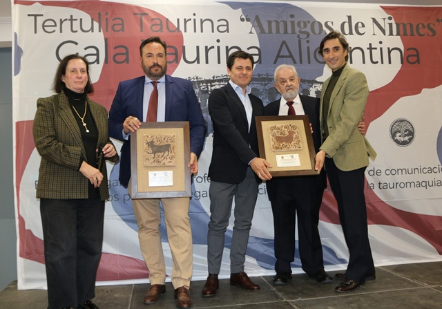 Entregó estos galardones Pilar Tebar -Secretaria de Cultura de la Comunidad Valenciana-. Jorge Casals manifestó: «Muchísimas gracias a todos, a Alicante la llevo en el corazón porque marcó el inicio de un camino, el que catorce años después hubiese toros de nuevo en nuestra Televisión Valenciana, la verdad es que es todo un orgullo»; y añadió Calsals con visible admiración y sincera gratitud, fue un bonito gesto del periodista valenciano, propio de toreros: «Este camino también se inició gracias a alguien de aquí, de Alicante, a quién también llevo en el corazón, creo que debe compartir este premio conmigo, ¡Paco Palazón!; por favor, el tiene que acompañarme, porque gracias a él, pocos como él saben explicar el toreo en la televisión. Gracias, Paco». Por su parte, el periodista alicantino José Germán Estela agradeció a la Tertulia «Amigos de Nimes», dijo: «La más importante de Alicante con una gran trayectoria». Comentó la importancia de que el periodismo taurino esté presente ante radicalismos abolicionistas: «Tenemos que responder al ministro de cultura, Ernesto Urtasun, porque es muy grave que un ministro de cultura del Gobierno de España se posicione en contra de la cultura, se radicalice en contra de los derechos y libertades de quiénes no piensen como él».