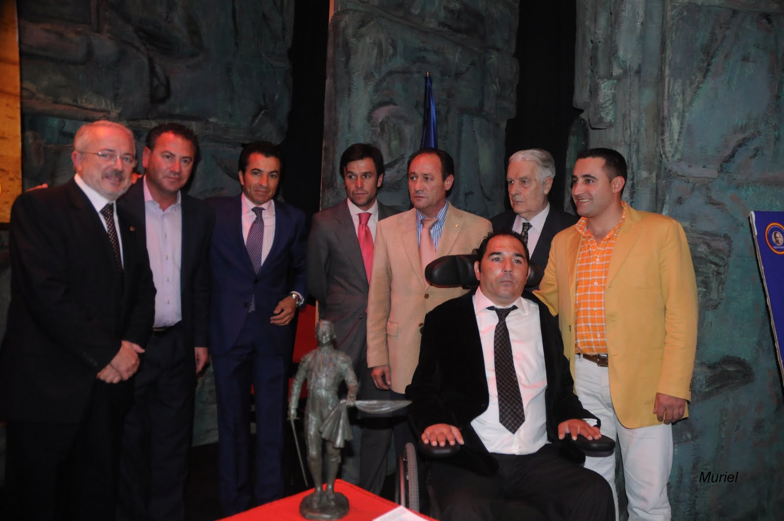El Fundi se encargó de recibir, de manos de Fernando Claramunt, el premio otorgado a Adrián Gómez, consistente en la magnífica escultura obra de Santiago de Santiago que representa a Antonio Bienvenida en su famoso “pase cambiado”.