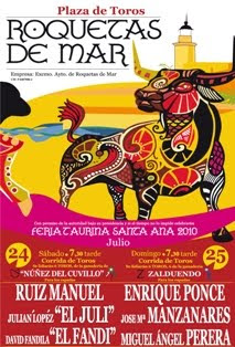 La empresa de Roquetas de Mar, que resaltamos es el Excmo. Ayuntamiento de la localidad, hizo oficial los carteles de la Feria Taurina de Santa Ana. El primer cartel se anuncia para el sábado 24 de julio, se lidiarán Toros de Núñez del Cuvillo por: RUIZ MANUEL, “EL JULI” y “EL FANDI”. Al día siguiente, domingo 25 de julio, se anuncian Toros de Zalduendo para ENRIQUE PONCE, José Mª. MANZANARES y Miguel Ángel PERERA.