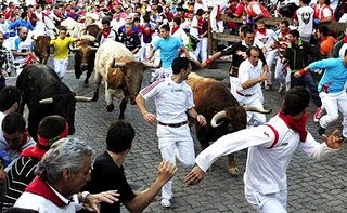 5º ENCIERRO DE SAN FERMIN 2011. LOS ASTADOS DE FUENTE YMBRO «VUELAN» POR LAS CALLES DE PAMPLONA.