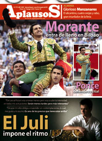 REMITIDO POR REDACCIÓN DE APLAUSOS.es Morante de la Puebla y Julián López «El Juli» son los principales protagonistas de la portada del nuevo número de la revista APLAUSOS. El sevillano cortó dos orejas y abrió la puerta grande tras una faena llena de genialidad, inspiración y torería. Además, el semanario taurino ofrece un amplio análisis de la pasada Semana Grande de Bilbao en la que destacó el gran nivel ganadero así como las actuaciones de Enrique Ponce, David Mora, Manzanares y Diego Urdiales.