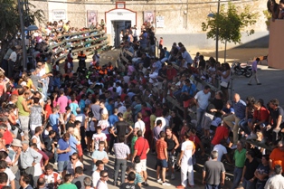 CALASPARRA. Martes,6 Setm. 2011. Texto y Foto.- PEPE CASTILLO ABREU.El encierro de esta mañana ha sido»rapido y tranquilo».Lo primeroporque tan sólohan transcurrido dos minutos escasos en que llegaran los novillos de «Guardiola Fantoni», desde la apertura de los corrales en la Plaza de la Constitución hasta la entrada aLa Caverina; si bién, se demoraron un poco másen entrara los corrales de la plaza.Y tranquilo, a la vez, ha resultado este cuarto encierro, sinpercances ni sobresaltos. Las calles de Calasparra con el ambiente habitual y una multitud de lugareños y foráneosque sigue los encierros fielmente cadamañana.
