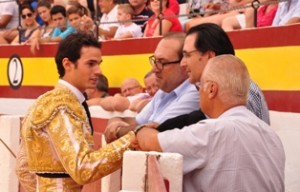 Foto de TNM.com. Puerta brindaba el pasado martes en Calasparra su primer novillo al Dr. Robles y su equipo.