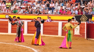 CALASPARRA (Murcia). Jueves, 6 Septiembre 2012. Feria Taurina del Arroz. 4ª. de Abono. Texto y foto.- Pepe Castillo Abreu. Los Prieto de la Cal echaron el jarro de agua fría a una tarde que la afición de Calasparra esperaba, como siempre, con preferencia y expectación. Pero lamentablemente se cumplió el aserto »Tarde de Expectación, tarde de Decepción». Los veraguas de Prieto de la Cal,bien presentados,algunos con cuajo de toro,pasará a la historia del Certamen como una tarde de»petardo ganadero».Fue una novillada muy complicada y peligrosa que desarrolló mucho sentido, en especial el quinto, una auténtica alimaña, con la que estuvo más que digno Gallo Chico. Pero en general el encierro fue malo de solemnidad,de conjunto reservón y desarrollando mucho sentido.Lo que creó por momentos algún desorden y desconcierto, especialmente en elsegundo tercio.