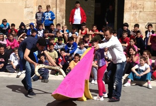 Plaza de la Iglesia fue marco excepcional que sirvió de ruedo para la ocasión, donde el matador de toros murciano Rafael Rubio «RAFAELILLO» impartiera su «Clase Magistral» a escolares y jóvenes del municipio, que en número importante se interesaron por las distintas suertes y manejo de los tratos bajo la dirección de un consumado maestro como Rafaelillo; que siempre directo, cercano, cordial, y que con su simpatía natural, conectó desde el principio con un numeroso alumnado ocasional y un no menos numeroso público curioso. Conectó fácilmente con todos de principio a fin de la jornada, y consiguió la implicación y el mayor interés en toda su completa y muy didáctica exposición taurina, en la que algunos participantes se atrevieron, con capote y muleta en mano, practicar lo asimilado.