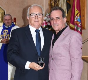 Los Diarios digitales Cartagenaactualidad, Cartagenadehoy, TorosNoticiasMurcia.com, el fotografo Luis Godinez y el sacerdote Don Lázaro Gomariz recibieron la Medalla de Plata de manos de Matias Barco -Presidente de Cartagena Por La Caridad.