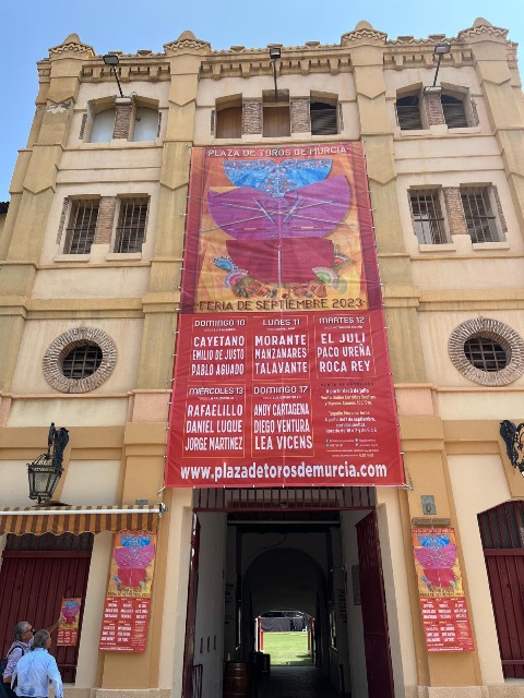 MURCIA. Viernes, 30/junio/2023. Informa: TOROMEDIA. La empresa Toros Sureste ha colocado una lona gigante en la fachada de la Plaza de Toros de La Condomina como una de las primeras acciones publicitarias de la feria taurina de Murcia, que se celebrará los días 10, 11, 12, 13 y 17 de septiembre, con un abono que constará de cuatro corridas de toros y un festejo de rejones.