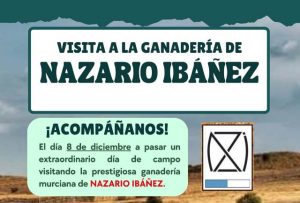 Con motivo de la Festividad de la Inmaculada Concepción – Lunes 8 de Diciembre 2025 -, la Asociación Taurina de Aficionados Prácticos de Calasparra organiza viaje «Visita a la Ganadería de Nazario Ibañez», Finca Las Moratillas. Una bonita y completa jornada en familia en el campo bravo. Completa información en cartel.