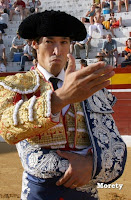 manos por delante. Tras dos puyazos sin emplearse, llegó a la muleta sin pasar por ningún pitón. Desarrolló mucho sentido dando la impresión de estar toreado. Tenía mucha guasa. Tras tres pinchazos y un descabello Rafa acabó con él.En su segundo el saludo capoteril fue por verónicas de rodillas. Tras dos puyazos, uno en chiqueros y otro en la contraquerencia, brindó a Guillermo Llorente. Tras varias tandas sometiendo y bajándole la mano el toro le protestó y le dio un pitonazo en el ojo necesitando varios puntos de sutura. Todo lo que le sacó fue a fuerza de aguantar las miradas y a regañadientes, con una gran dosis de valor por parte del torero. Le mató de entera sin puntilla.