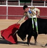 Suresteño, se ha encontrado en primer lugar con un novillo que poco a poco se ha complicado a medida que transcurria la faena y donde él ha intentado ha conseguido buenos muletazos, la