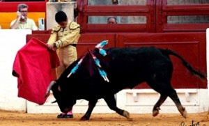 ALICANTE. Domingo, 5 Agosto 2012.- Texto.- JOSÉ MARIA JERICÓ. Fotos.- BENITO SÁNCHEZ LEYVA. La entrada de ayer fue de las peores que se recuerdan en esta plaza para presenciar una novillada en la que destacaron los novillos que se lidiaron pertenecientes a la ganadería salmantina de Dña. Adelaida Rodríguez, bien presentados, encastados y de juego desigual, aunque de haberse enfrentado a ellos una terna de novilleros más preparados seguro que hubieran cosechado mayores triunfos que los que obtuvieron los tres que ayer hicieron su presentación en Alicante….