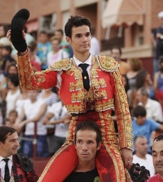 BLANCA (Murcia). Fuente.- ACOTAURO. Miércoles, 15 Agosto 2012. El novillero Antonio Puerta ha salido a hombros tras triunfar en la segunda novillada de la Feria de Blanca celebrada. El ceheginero ha cortado una oreja a cada unos de sus novillos de la ganadería de Luis Algarra, y en ambos se le pidió con fuerza la segunda, que la Presidencia no concedió. Tras finalizar la vuelta al ruedo con el trofeo cortado a su segundo,fue obligado a dar una segunda vuelta al ruedo con bronca posterior al palco.