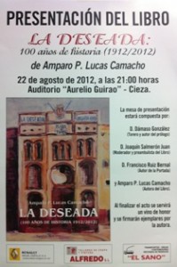 CIEZA. Presentarán Libro: »La Deseada, 100 Años de Historia», de Amparo P. Lucas – 22 de Agosto -/ Informa.- Pepe Castillo Abreu