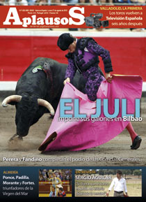 REMITIDO POR REDACCION DE www.APLAUSOS.es Julián López «El Juli» es el gran protagonista de la portada del nuevo número de la Revista APLAUSOS. El madrileño impuso sus galones en las pasadas Corridas Generales de Bilbao donde abrió la puerta grande. Junto al triunfo de Julián, APLAUSOS cuenta con una completa información de un abono donde Miguel Ángel Perera, Iván Fandiño o Jandilla en el apartado ganadero fueron otros nombres propios.