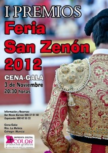 PREMIOS FERIA DE SAN ZENÓN 2012. Mejor Faena: Francisco Montiel. Mejor estocada: Antonio José López ”˜”™El Rubio”™”™. Mejor Par de Banderillas: Antonio Cama. Mejor Puyazo : Desierto. PREMIO MEJOR NOVILLERO CON PICADORES MURCIANO: Antonio Puerta. MENCIONES ESPECIALES: D. Pedro Barrera, D. Andrés Garrido y a los novilleros los locales Antonio Puerta , David Fernández, Fernández de la Torre y al rejoneador Ramón Mata.