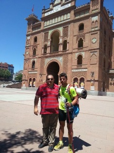 MADRID. Jueves4 Julio 2013. Redacción. Foto.- Prensa-JuanBelda. El murciano ha llegado asu »meta» tras once durísimas jornadas, pero, lamentablemente,no ha visto atendida su petición a la empresa de Madrid. Juan Belda no ha podido vercumplido su objetivo -»Una Oportunidad de Torear en Las Ventas»-, por el que ha hecho el tremento sacrificio de su peregrinaje a pie recorriendo casi 400 kms.; que inicio el pasado 24 de junio, saliendo desu pueblo natal Fortuna. hasta su llegada este mediodía,jueves 4 de julio,a la Plaza de Toros de Las Ventas, con la fe y las ilusiones puestasen conseguir una oportunidad por parte de la empresa Taurodelta, para torear en Las Ventas. Ilusiones que ha visto rotas ante la negativa por respuesta de Taurodelta encontratarlo.