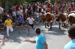 MORATALLA (Murcia). Viernes, 12 Julio 2012. Texto y foto.- Enrique Soler. Ayer jueves, los astados realizaron el primero de los encierros conuna carrera rápida y limpia hasta la zona de corrales, situada próxima a la Casa Consistorial. Únicamente hubo que lamentar un herido debido a una caída en la zona de la Farola, en primer lugar fue trasladado por los voluntarios de Protección Civil, hasta el centro de salud, no necesitando más asistencia sanitaria.