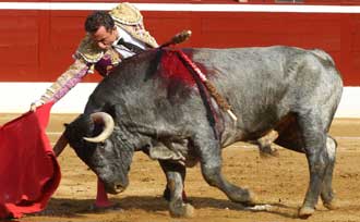 MONT DE MARSAN (Francia). Domingo, 21 Julio 2013. Feria de La Madeleine. Publicado en www.Aplausos.es Arrancó con fuerza la tarde en el coso de PlumanÁ§on y es que el ofensivoCantarero, el primer escolar del festejo, puso la emoción en el tercio de varas, arrancándose con alegría en tres entradas al caballo desde el centro del ruedo. No estuvo acertado el picador. Faena de menos a más, que tuvo sus mejores momentos en tres tandas al natural, la última de ellas a pies juntos. Por el pitón derecho no hubo el mismo acople. Mató de una gran estocada entre la emoción del público. Se pidió con fuerza la segunda oreja pero el palco dejó en un trofeo el premio para el torero. Vuelta al ruedo para el toro, y dos vueltas al ruedo que dio el murciano antes de una sonora bronca al presidente. Su segundo fue picado de forma extraordinaria por Juan Juan José Esquivel. En la muleta el toro respondió con malas intenciones, resultando complicado e impidiendo el lucimiento de Rafaelillo que lo despachó con brevedad.El quinto, recibido con dos largas al cambiadas al hilo de las tablas, cobró tres puyazos bien ejecutados por Agustín Collado. La faena, brindada a El Fundi, fue deslucida por el incómodo calamocheo del toro, que alcanzó más de la cuenta la tela del murciano. La faena no tuvo mayor lucimiento y el toro, a menos, acabó aplomado y parado. Mató de pinchazo, estocada contraria y trasera y dio la vuelta al ruedo.