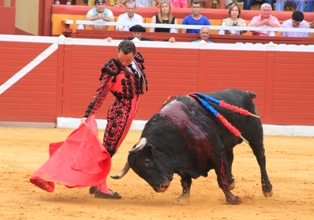 y que acabaron desarrollando peligro; especialmente el 4º, ante el que Rafaelillo, porfió, y arriesgó en extremo, haciendo gala de su consumado oficio y recursos ante un oponente que lo midió en cada pase, los parones y las miradas hacían temer la cogida en cualquier momento. La firmeza de Rafaelillo acabaron por someter a un oponente de alto riesgo. El público valoró el esfuerzo del murciano y la oreja concedida fue un premio que mereció ser mayor, pero que le sirvió a la postre para erigirse en triunfador de la tarde y salir a hombros en solitario, al haber cortado otra oreja a su primero, premio a una faena que tuvo que inventarse en los medios ante un toro que no se entregó en ningún momento, y ante el que tuvo que emplearse.