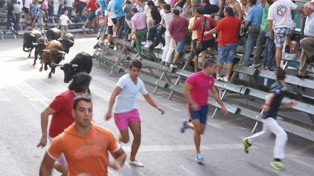 CALASPARRA (Murcia). Martes, 3 Septiembre 2013. Prensa-Calasparra. Los novillos, de impresionantes hechuras, han salido en grupo a una velocidad endiablada, dejando atrás a los mansos. El primer encierro de Calasparra ha sido rápido y limpio, sin dejar ni un solo herido por ninguna circunstancia, ha señalado el edil de Seguridad y Festejos, José Vélez, quien también ha destacado la afluencia de público, a pesar de ser día laboral.