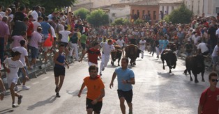 CALASPARRA. Jueves, 5 Septiembre 2013.Informa.- Prensa.Calasparra. Menos de dos minutos (1´58) han tardado lo esperados novillos de Cebada Gago en completar la carrera. El ya habitual hierro en Calasparra ha levantado un gran interés y desde primeras horas de la mañana miles de personas ocupaban plaza en el recorrido para ver de cerca a los impresionantes ejemplares.