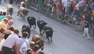 CALASPARRA (Murcia). Viernes, 6 Septiembre 2013. Informa.- Prensa.Calasparra. Los novillos de El Torero han completado el recorrido del cuarto encierro de reses bravas de Calasparra en dos minutos y treinta y cuatro segundos. Un encierro que ha discurrido más sosegado que los anteriores al ir los novillos hasta el último tramo arropados por los cabestros. En la cuesta de Ordóñez, y antes de tomar la curva dela Plaza de Toros, los novillos han puesto a prueba la destreza de los corredores haciendo derrotes a uno y otro lado, aunque sin mayores consecuencias para los mozos. El cuarto encierro ha colapsado de público el recorrido al ser festivo en Calasparra, aunque en este sentido el grueso se espera para el fin de semana.
