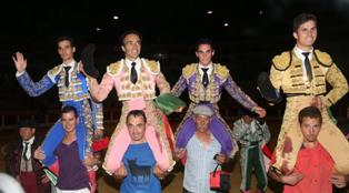 Matadores y novilleros salen a hombros. EL CID, 3 orejas. DANIEL LUQUE, 2 orejas y rabo. Los novilleros ANTONIO PUERTA, 2 orejas y rabo y DAVID FERNÁNDEZ, 4 orejas.