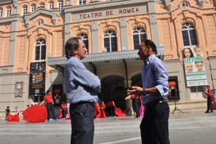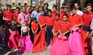 MURCIA. Domingo, 15 Septiembre 2013. Texto y fotos Pepe Castillo Abreu.- Con música de pasodoble, sin molestar, en el volumen justo, poco a poco se fue congregando una multitud; unos para cumplir con su deber de rendir »Honores a La Fiesta», o de informar, otros sorprendidos aún sabiendo a lo que iban, o en algún caso encontrarse casualmente con el singular acontecimiento de luz, color y emociones del momento: Toreo de Salón en el Centro de Murcia.