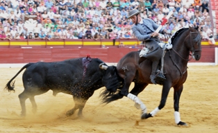 Andy Cartagena, por lo que se vio en el festejo, pudo haber sido el gran triunfador pero falló con los aceros. El alicantino estuvo toda la tarde sobrado, exhibiendo su mejor rejoneo con facilidad, poderío y haciendo gala de su natural exquisita elegancia. El que abrió plaza muy justo de fuerzas no ofreció opciones de lucimiento; Andy le midió el castigo, solo un rejón, estuvo muy por encima de un toro que se paró y ante el que tuvo que hacer todo el esfuerzo. Perdió un trofeo de Murcia al fallar con el rejón de muerte. En el cuarto Andy, sin recurrir con regalos ni alardes a la galería, salió con convicción a por el triunfo, lo tuvo en la mano con una faena espectacular que despertó la media plaza adormecida que cubrió el aforo. Faena en la que tuvo un oponente colaborador, lo cuidó, un solo rejón, le duró y transmitió, y amenizada por la Banda de Música que interpretó con ganas »Paquito El Chocolatero», la plaza se contagió con ganas de