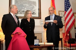 El Cónsul General de España en Nueva York, Juan Ramón Martínez Salazar, otorgó el pasado jueves, 7 novbre., la Medalla del Mérito Civil a Lore Monnig, presidenta del New York City Club Taurino, en un acto celebrado en la residencia del cónsul en la 5ª Avenida.