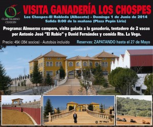 CEHEGIN (Murcia). Lunes, 12 Mayo 2014. Prensa C.T.C. Dentro de los actos y actividades que se vienen realizando con éxito desde su fundación, en el siguiente se programa visita a la la Ganadería »Los Chospes», en la bonita Finca El Colmenar, sita en el término de Los Chospes-El Robledo provincia de Albacete.